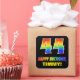 Ce sticker amusant, coloré et joyeux sur le thème de l'anniversaire comporte un grand nombre de "44" et le message "HAPPY BANTHDAY", tous deux colorés avec un motif inspiré par un gradient de spectre arc-en-ciel, ainsi qu'un nom personnalisable jaune gras. L'arrière - plan est noir de couleur. Des autocollants sur le thème de l’anniversaire amusant comme celui-ci pourraient être utilisés pour envelopper un cadeau ou un cadeau qui est donné pour célébrer le quarante-quatrième anniversaire de quelqu’un, ou peut-être être donné aux participants à une fête d’anniversaire. [~Z0000480]