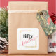 Fifty and Fabulous est placé dans une typographie élégante rouge et noire et encadrée d'un trait de brosse doré. Les couleurs peuvent être customisées.