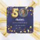 Sticker Carré 50e anniversaire photo étoiles bleues marine or