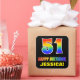 Ce sticker joyeux, amusant et coloré sur le thème de l'anniversaire comporte un grand nombre de "51" et le message "HAPPY BANTHDAY", tous deux avec un dégradé arc-en-ciel coloré inspiré couleur motif, avec un nom personnalisé jaune gras. L'arrière - plan est noir de couleur. Des autocollants sur le thème de l'anniversaire amusant comme celui-ci pourraient être utilisés pour envelopper un cadeau ou un cadeau offert à quelqu'un qui célèbre son cinquante et unième anniversaire, ou peut-être être donné aux participants à une fête d'anniversaire ou à une fête. [~Z0000480]