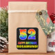 Ce sticker joyeux, coloré et amusant sur le thème de l'anniversaire comporte un grand nombre de "52" et le message "HAPPY BANTHDAY", tous deux colorés avec un motif inspiré par un gradient de spectre arc-en-ciel, avec un nom personnalisé jaune gras. L'arrière - plan est noir de couleur. Des autocollants sur le thème de l’anniversaire amusant comme celui-ci peuvent être utilisés pour envelopper un cadeau ou un cadeau qui est donné pour célébrer le cinquantenaire de quelqu’un, ou peut-être être donné aux participants à une fête d’anniversaire ou à une fête. [~Z0000480]