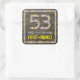 Ce design amusant, rustique, inspiré de la nature, autocollant carré d'anniversaire comporte le message "Happy 53rd Birthday", et un nom de destinataire personnalisé. Le grand numéro "53" et la bordure sont des icônes de fleurs. L'arrière - plan est décoré d'un motif de style simili-bois. Des autocollants sur le thème de l’anniversaire comme ceux-ci peuvent être donnés ou utilisés à une fête d’anniversaire célébrant le cinquante-troisième anniversaire de quelqu’un, ou peut-être utilisés pour préparer des cadeaux ou des invitations à un tel événement. [~Z0000654]