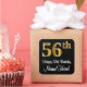 Ce design luxueux, élégant et sophistiqué d'autocollant carré à thème d'anniversaire comporte un grand numéro ordinal "56th" avec une imitation/faux look d'inspiration or, plus le message de voeux d'anniversaire "Happy 56th Birthday," et un nom personnalisé dans une police de style script. L'arrière - plan est noir de couleur. Des autocollants de luxe comme celui-ci peuvent être utilisés pour envelopper les cadeaux donnés à quelqu'un pour célébrer son 56e anniversaire, ou peut-être être donnés aux invités à une fête d'anniversaire ou de fête. [~Z0000517]