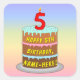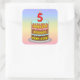 Ce sticker carré coloré et joyeux, sur le thème de l'anniversaire, présente une représentation de dessin animé d'un gâteau d'anniversaire à trois niveaux avec une bougie en forme de numéro sur le dessus montrant l'âge "5", avec le message "HAPPY 5TH BIRTHDAY," et un nom de destinataire personnalisable. L'arrière - plan a un motif multicolore pastel en arc-en-ciel inspiré du spectre dégradé. Des autocollants comme ceux-ci peuvent être donnés ou utilisés lors d’une fête d’anniversaire tenue pour célébrer le cinquième anniversaire de quelqu’un, ou peut-être utilisés pour préparer des cadeaux, des cadeaux ou des invitations à un tel événement. [~Z0000624]