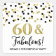 60 et fabuleuse fête d'anniversaire privilégient les étiquettes autocollantes avec de l'or et des confettis noirs.