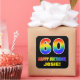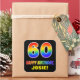 Ce sticker joyeux, coloré et amusant sur le thème de l'anniversaire comporte un grand nombre de "60" et le message "HAPPY BANTHDAY,", tous deux colorés avec un motif inspiré par un gradient de spectre arc-en-ciel, avec un nom modifiable jaune gras. L'arrière - plan est noir de couleur. Des autocollants amusants comme celui-ci pourraient être utilisés pour envelopper un cadeau d'anniversaire ou un cadeau offert à quelqu'un qui célèbre son 60e anniversaire, ou peut-être être donné aux participants à une fête d'anniversaire ou à une fête. [~Z0000480]