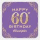 Sticker Carré 60e anniversaire fête violet et Parties scintillan