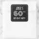 Cet élégant style des années 1920-1930 inspiré de la célébration de soixantième anniversaire autocollant carré design comprend un nom modifiable, un look art déco fantaisie inspiré numéro "60th", le message "BANTHDAY PARTY!", et un motif de frontière composé de lignes. Il a un arrière - plan de couleur noire par défaut, mais il peut être customisé à une couleur différente, si désiré. Des autocollants sur le thème de l’anniversaire comme ceux-ci peuvent être utilisés ou distribués lors d’une fête d’anniversaire célébrant le 60e anniversaire de quelqu’un, ou peut-être utilisés lors de l’emballage de cadeaux/cadeaux ou de la préparation d’invitations pour un tel événement. [~Z0000617]