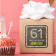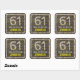 Sticker Carré 61e anniversaire : Floral Number, Faux Wood Look,