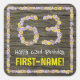 Cet autocollant carré à thème d'anniversaire fleuri, rustique et d'inspiration nature présente le message "Joyeux 63e anniversaire", ainsi qu'un nom de destinataire personnalisé. Le grand numéro "63" plus la bordure sont tous deux constitués d'icônes de fleurs. L'arrière - plan présente un faux/imitation motif à grains de bois. Des autocollants sur le thème de l’anniversaire comme ceux-ci peuvent être utilisés ou donnés à une fête d’anniversaire célébrant le soixante-troisième anniversaire de quelqu’un, ou peut-être utilisés lors de la préparation d’invitations ou d’enveloppements de cadeaux/cadeaux pour un tel événement. [~Z0000654]