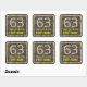 Sticker Carré 63e anniversaire : numéro floral, Faux Wood Look,