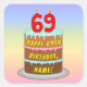 Sticker Carré 69e anniversaire : Fun Cake and Candles + Nom pers
