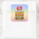 Ce sticker carré d'anniversaire coloré et optimisé présente une représentation de type dessin animé d'un gâteau d'anniversaire à trois niveaux avec des bougies en forme de chiffres sur le dessus montrant le numéro "69", avec le message "HAPPY 69TH BIRTHDAY", et un nom de destinataire personnalisé. L'arrière - plan a un motif multicolore pastel arc-en-ciel inspiré du spectre dégradé. Des autocollants sur le thème de l’anniversaire amusant comme ceux-ci peuvent être distribués ou utilisés à une fête d’anniversaire pour célébrer le soixante-neuvième anniversaire de quelqu’un, ou peut-être utilisés pour préparer des invitations ou des enveloppements de cadeaux/cadeaux pour un tel événement. [~Z0000624]