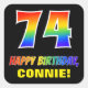 Cette conception amusante, joyeuse et colorée d'autocollant d'anniversaire comporte un grand nombre de "74" et le message "HAPPY BANTHDAY", tous deux ayant un dégradé arc-en-ciel de couleur motif inspirée, avec un nom personnalisé jaune gras. L'arrière - plan est noir de couleur. Des autocollants sur le thème de l’anniversaire amusant comme celui-ci peuvent être utilisés pour donner un cadeau ou un cadeau pour célébrer le 74e anniversaire de quelqu’un, ou peut-être être donnés aux participants à une fête d’anniversaire ou à une fête. [~Z0000480]
