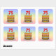 Ce sticker carré à thème d'anniversaire amusant et joyeux présente une représentation de dessin animé d'un gâteau d'anniversaire à trois niveaux avec des bougies en forme de numéro sur le dessus montrant l'âge de "75", avec le message "HAPPY 75TH BIRTHDAY," et un nom de destinataire personnalisé. L'arrière - plan dispose d'un motif multicolore pastel en arc-en-ciel inspiré du spectre dégradé. Des autocollants sur le thème de l’anniversaire comme ceux-ci peuvent être utilisés ou donnés à une fête d’anniversaire célébrant le soixante-quinzième anniversaire de quelqu’un, ou peut-être utilisés pour préparer des invitations ou envelopper des cadeaux/cadeaux pour un tel événement. [~Z0000624]