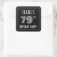 Ce modèle d'autocollant de carré de fête et de célébration des soixante-dix-neuvième ans s'inspire d'un nom personnalisé, d'un look art déco complexe inspiré du numéro "79e", du message "FÊTE D'ANNIVERSAIRE !" et d'un motif frontalier composé de lignes. Il a un arrière - plan de couleur noire par défaut, mais il peut être customisé à une couleur différente, si désiré. Des autocollants comme ceux-ci peuvent être distribués ou utilisés à une fête organisée pour célébrer le soixante-dix-neuvième anniversaire de quelqu’un, ou peut-être utilisés pour préparer des invitations ou des cadeaux d’emballage pour un tel événement. [~Z0000617]