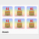 Ce sticker carré à thème d'anniversaire joyeux et amusant présente une représentation de dessin animé d'un gâteau d'anniversaire à trois niveaux avec des bougies en forme de numéro sur le dessus montrant l'âge "81", avec le message "HAPPY 81ST BANTHDAY", et un nom de destinataire personnalisé. L'arrière - plan a un motif multicolore pastel en arc-en-ciel inspiré du spectre dégradé. Des autocollants sur le thème de l'anniversaire, comme ceux-ci, peuvent être utilisés ou donnés à une fête pour quelqu'un qui célèbre son quatre-vingt-premier anniversaire, ou peut-être utilisés pour emballer des cadeaux ou préparer des invitations pour un tel événement. [~Z0000624]