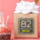 Sticker Carré 82e anniversaire : numéro floral, Faux Wood Look,