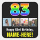 Sticker Carré 83e anniversaire : Arc-en-ciel "83"; photos et nom