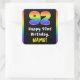 Ce design amusant et joyeux autocollant carré d'anniversaire comprend le numéro "92" avec un motif multicolore inspiré du spectre arc-en-ciel, avec le message "Happy 92nd Birthday," et un nom de destinataire personnalisé. Des autocollants sur le thème de l'anniversaire comme ceux-ci peuvent être donnés ou utilisés à une fête pour quelqu'un qui célèbre son 92e anniversaire, ou peut-être utilisés pour préparer des invitations ou envelopper des cadeaux/cadeaux pour un tel événement. [~Z0000630]