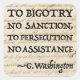 Une citation très pertinente de la Lettre de George Washington aux Juifs de Newport, Rhode Island (1790). Montré dans un contexte de la Constitution américaine. "Heureusement, le gouvernement des États-Unis, qui ne sanctionne pas le sectarisme, ne persécute aucune aide, n'exige que ceux qui vivent sous sa protection se considèrent comme de bons citoyens."