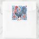 A metaphorical chicken image with a blue and white floral pattern and some of America's traditional shapes, ultra-minimalist style.
