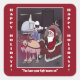 Stickers avec un drôle de dessin sur Père Noël et Rudolph le renne à nez rouge. L'image, l'arrière - plan et le texte peuvent être customisés. Illustration originale de DBcartoons.