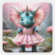 Sticker Carré Adorable Baby Dino dans une robe rose