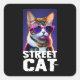 Sticker Carré Adorable Chat mignonne en Veste en Cuir