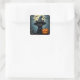 Sticker Carré Adorable Chat Noir Portant Sorcière Casquette