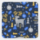 Image merveilleuse sur une feuille d'autocollants d'un motif de style scandinave avec cerf et autres éléments de Noël. Couleurs vives en bleu royal, bleu marine, gris et jaune.