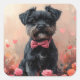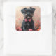 Sticker Carré Affenpinscher avec Rose - Saint Valentin