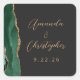 Sticker Carré Agate Emerald Green Gold Script Mariage foncé