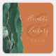 Sticker Carré Agate Geode Script Emerald Green Gold Rust Mariage