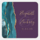 Sticker Carré Agate Geode Script Turquoise Gold Purple Mariage