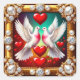 Deux colombes blanches symbolisent l'amour et la paix dans un cadre doré orné de perles. Entouré de coeurs rouges vifs, le design évoque des sentiments d'amour, d'affection et d'élégance.