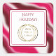 Ajoutez votre logo d'entreprise à cet autocollant festif rayé rouge, rose et blanc. "Joyeuses Fêtes" écrit dans une typographie moderne élégante est modifiable. Les rayures texturées funky de canne à bonbon sont ma création originale. J'ai pris les couleurs vives d'une photographie originale de fleur de pivoine. Le motif de bonbons de Noël et les étincelles entourent le texte moderne simple sur fond blanc. Personnalisez cette étiquette ou cet autocollant pour vos cadeaux promotionnels d'entreprise, vos enveloppes de fêtes d'entreprise et l'emballage de votre magasin de Noël pendant cette période des fêtes.