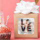 Autocollant photo moderne et simple avec votre nom de famille ou autre texte en calligraphie élégante et un voile blanc transparent avec le mot LOVE découpé. Téléchargez simplement votre photo préférée et ajoutez votre texte ! Parfait pour les cadeaux de la Saint-Valentin, les mariages, les faire-part ou un autocollant chic "merci" pour vos colis d'entreprise. Conçu exclusivement pour vous par Happy Dolphin Studio. Si vous avez besoin d'aide ou de produits assortis, n'hésitez pas à nous contacter via notre chat en magasin !