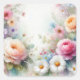 Sticker Carré Ajoutez Votre Texte Modèle Vierge Fleurs Aquarelle