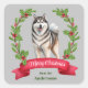 Sticker Carré Alaskien Malamute Chien Holly Banner Noël