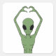 Vivid green alien forming a heart with arched arms against black, blending sci-fi whimsy with playful charm. Bold contrast, perfect for space fans and quirky casual outfits.
