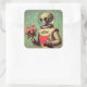 Sticker Carré Alien spatial Valentine Sci Fi Romantique Valentin