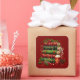 Festive "All booked for Christmas" stacked books with lights, holly, candy canes and hot chocolate graphic design.