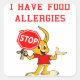 Stickers Carré Aller-Bunny STOP-Bunny Food Allergies. Les autocollants d'avertissement d'allergie alimentaire StopBunny sont parfaits pour les enfants, jeunes ou timides, de parler pour eux-mêmes.