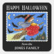 Sticker Carré Amusante Halloween Chat Sorcière chauves-souris Br
