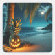 Sticker Carré Ananas Jack-o-lanterne Sur Une Plage