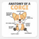 Sticker Carré Anatomie D'Un Corgi Chiens Mignons Chiens Drôle Ch