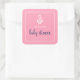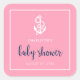 Sticker Carré Ancre Baby shower de script rose et bleu