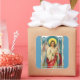 Peinture vintage d'un ange avec un grand ruban rouge, belle fumée blanche avec des parures d'or et les mains ensemble dans la prière
