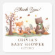 Joli baby shower d'animaux de bois avec une scène de forêt avec ours, renard et lapin.